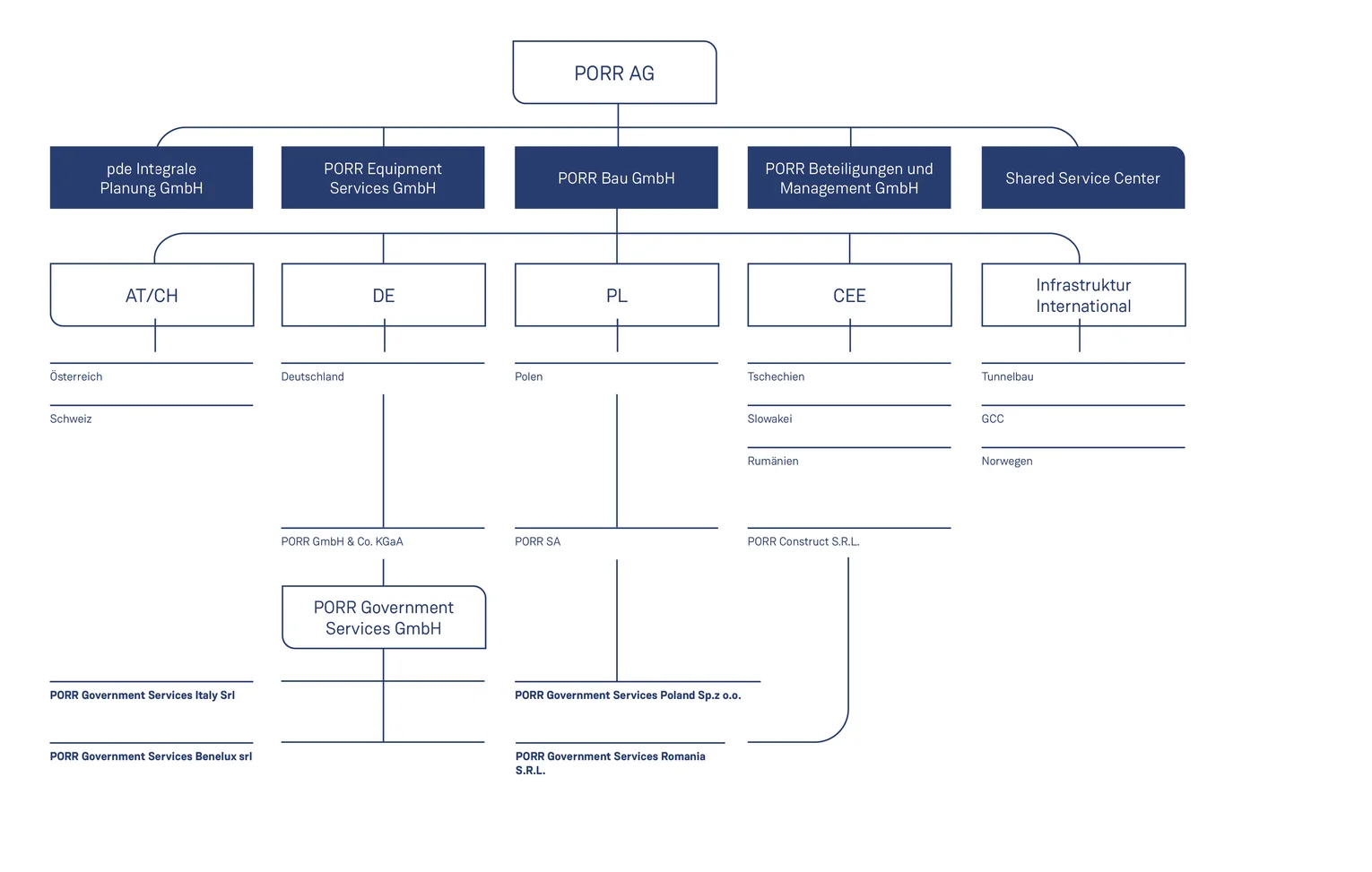 PORR Government Services GmbH is a subsidiary company of PORR GmbH & Co. KGaA and part of the internationally operating PORR Group From our five locations in Germany, Italy, Belgium, Poland and Romania, we realise real estate and infrastructure projects throughout Europe. Thanks to our clearly structured organisation, we guarantee effective teamwork and bundled expertise.