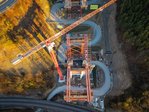 Die bisher erreichten Meilensteine unterstreichen eindrucksvoll die starke Teamleistung auf der Baustelle: So gelang bereits im vergangenen Herbst der erfolgreiche Einhub der ersten Grobbleche. Anschließend wurden sämtliche Traggerüste millimetergenau in ihre Solllage verschoben, wodurch nun an fünf Positionen gleichzeitig am Überbau gearbeitet werden kann. Ein weiterer wichtiger Meilenstein waren mehrere anspruchsvolle Betonagen in großer Höhe, die vollständig reibungslos umgesetzt wurden. Insgesamt kamen dabei rund 150 Kubikmeter Beton zum Einsatz. Trotz der erheblichen Förderhöhe, über die der Beton gepumpt werden musste, konnte die Betonage innerhalb von knapp acht Stunden erfolgreich abgeschlossen werden. Moderne Steigleitungen und hydraulische Betonverteiler sorgten dabei für einen präzisen und effizienten Bauablauf.