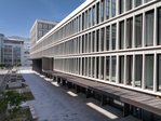 Die Bauausführung folgte konsequent den Prinzipien des Lean Managements mit Taktplanung und dem Last Planner System. Das Projekt wurde dadurch in klar definierte Arbeitseinheiten unterteilt, was die Koordination sämtlicher Gewerke erleichterte und Termin- sowie Budgetziele absicherte. Ein Meilenstein wurde im Oktober 2023 mit dem planmäßigen Rohbauabschluss und dem Richtfest erreicht. Ein weiterer Höhepunkt: Am 17. Mai 2024 wurde das letzte von 437 Architekturbeton-Fertigteilen montiert. Diese sind ein prägendes Gestaltungselement, das dem Gebäude seinen unverwechselbaren Charakter verleiht.